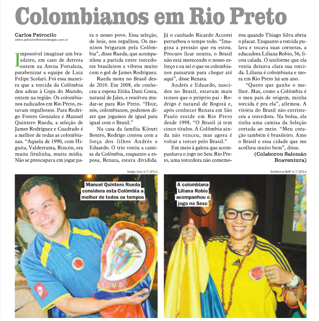 O jogo das quartas de final da seleção brasileira na Copa do Mundo não impediu a realização do Charla con Tapas – tradicional bate-papo em espanhol realizado pela empresa. Torcedores brasileiros e até colombianos – convidados do evento – poderem acompanhar o jogo no Café Falado. O evento foi destaque no jornal impresso Diário da […]