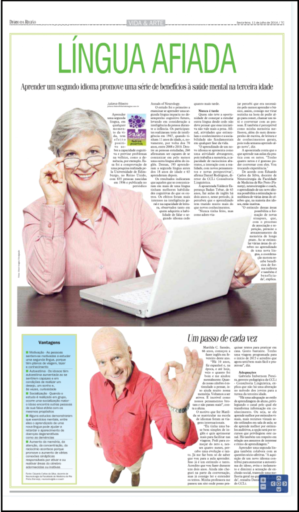 Diretor e gerente pedagógica da CCLi são destaques no Diário da Região e falam da importância que o aprendizado traz à saúde