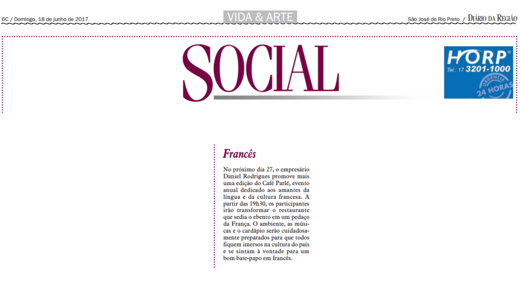 O evento Café Parlé, da CCLi, foi destaque em alguns veículos de Rio Preto: jornal Diário da Região, coluna social da Eloísa Mattos, coluna social do Roberto Toledo, no jornal Dhoje, e no site da colunista Cida Caran.